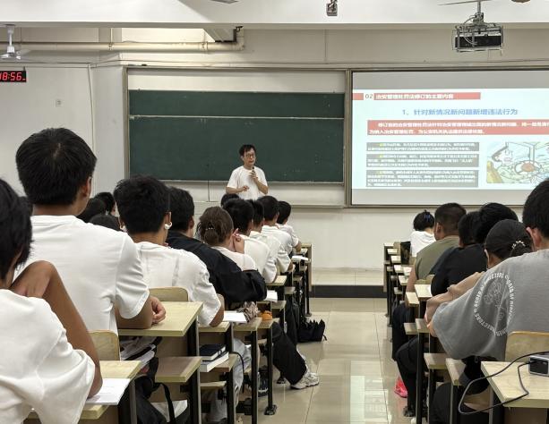 武老师以鲜活的社会案例为切入点,通过深入浅出的方式系统讲解法律知识。首先结合《法治宣传教育法》,阐明全民普法的核心意义在于“既保障公民权利,又强化守法义务”;随后重点解析《治安管理处罚法》中与校园生活密切相关的条款,包括寻衅滋事、故意伤害、财物损毁及网络谣言传播等行为的法律认定标准与相应责任。通过剖析大学生酒后斗殴受行政处罚、网络诽谤被追责等典型案例,将抽象法条转化为具体行为指引,有效强化了学生的法律底线意识。