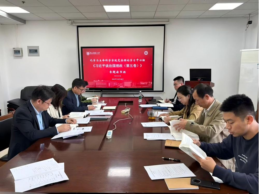 10月28日下午,化学与生命科学学院党委理论学习中心组在仙林校区教5-504(2)开展《习近平谈治国理政(第五卷)》专题读书班(第二期),读书班由学院党委理论学习中心组组长、党委书记乔祖琴主持,中心组全体成员参会。根据学校部署要求,中心组成员原原本本研读论著重要篇目并进行交流研讨。