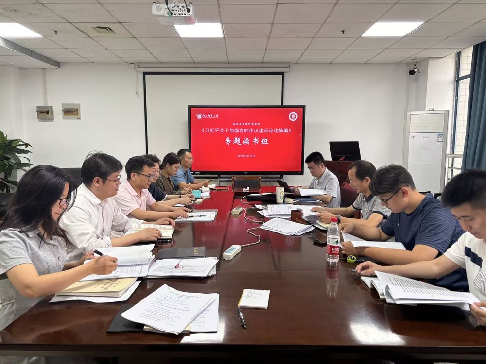 5月15日,化学与生命科学学院党委理论学习中心组在教5-504(2)开展《习近平关于加强党的作风建设论述摘编》(以下简称《摘编》)专题读书班,原原本本、逐章逐段学习摘编第五至九章内容。读书班由党委理论学习中心组组长乔祖琴主持,全体中心组成员、党支部书记参会。