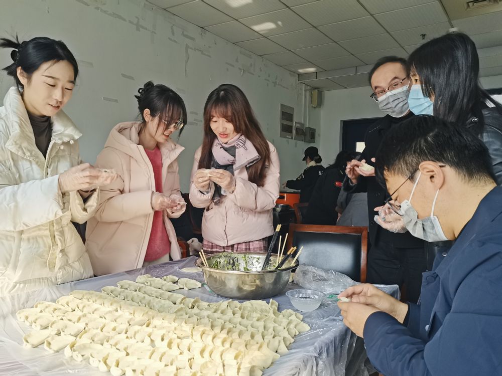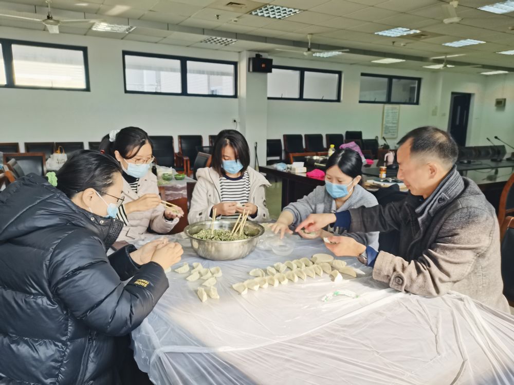 岁寒冬至临,温情暖人心。为弘扬中华优秀传统文化,丰富教职工业余文化生活,营造温馨和谐的“家文化”氛围,12月18日上午,化学与生命科学学院分工会在教5-413室举办了“热乎饺子香,冬至情更长”主题冬至活动。学院分工会主席张建平,全体分工会委员、工会小组长、部分教师代表以及教五楼物业管理工作人员齐聚一堂、共迎冬至。