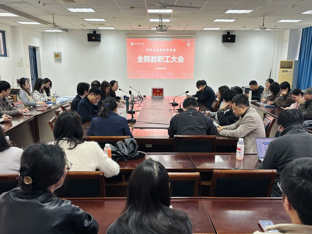 4月3日下午,化学与生命科学学院在南京邮电大学仙林校区教五413会议室召开全院教职工大会,学院党委书记乔祖琴、院长晁洁、党委副书记、副院长、分工会主席张建平、副院长苏邵、罗志敏出席会议,全体教职工参加会议。会议由乔祖琴主持。